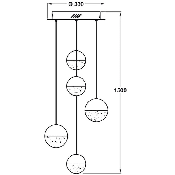 - Material: Metal ceiling plate, suspension wires and glass shades