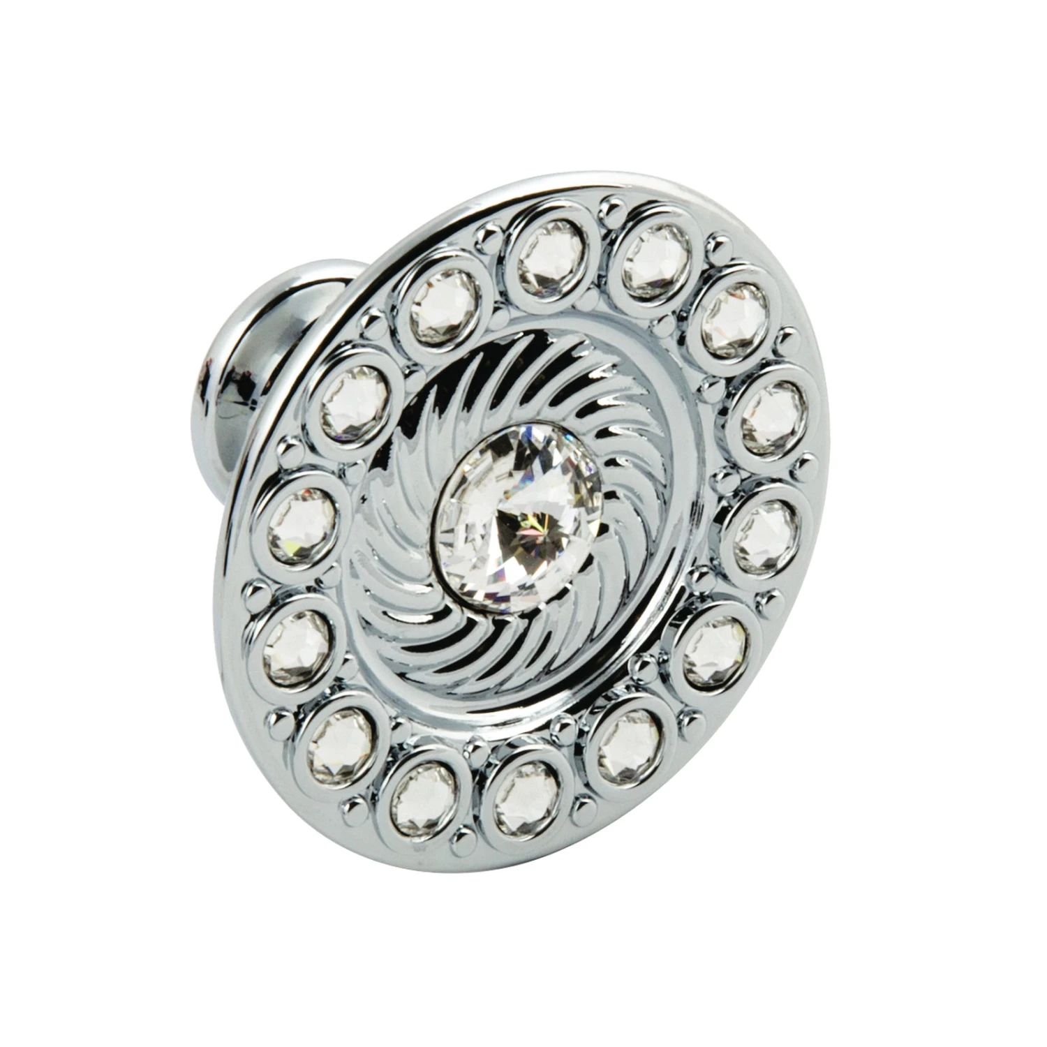 - Zinc alloy, polished chrome finish with Swarovski crystal