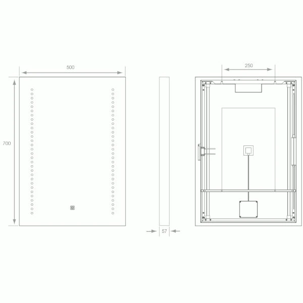 - Illuminated LED spots to front of mirror