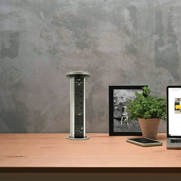 - Motorised pop up with 1 Bluetooth Speaker, 2x UK socket and 2 USB port