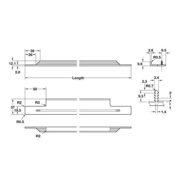 The Portobello Hafele profile handle is a modern looking handle from light supplier in a stainless steel effect finish and in various different sizes.